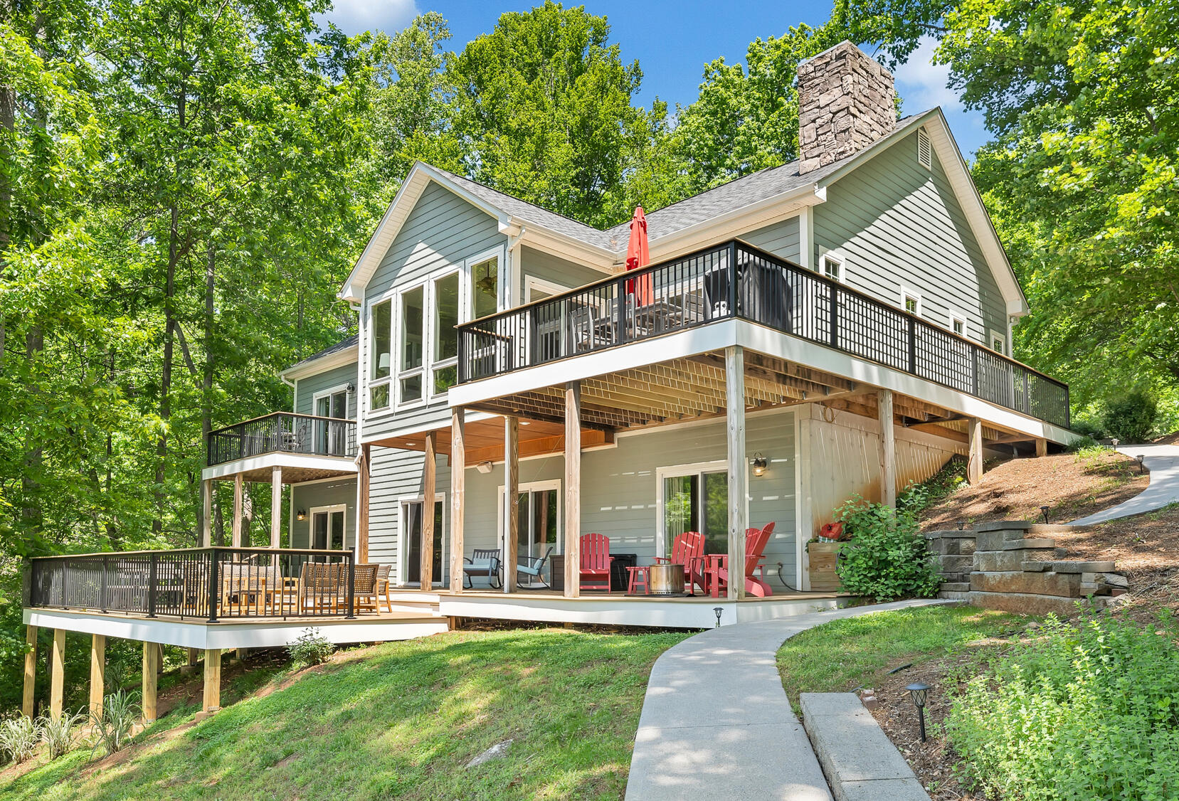 Paved, gently sloped walkway from house to dock